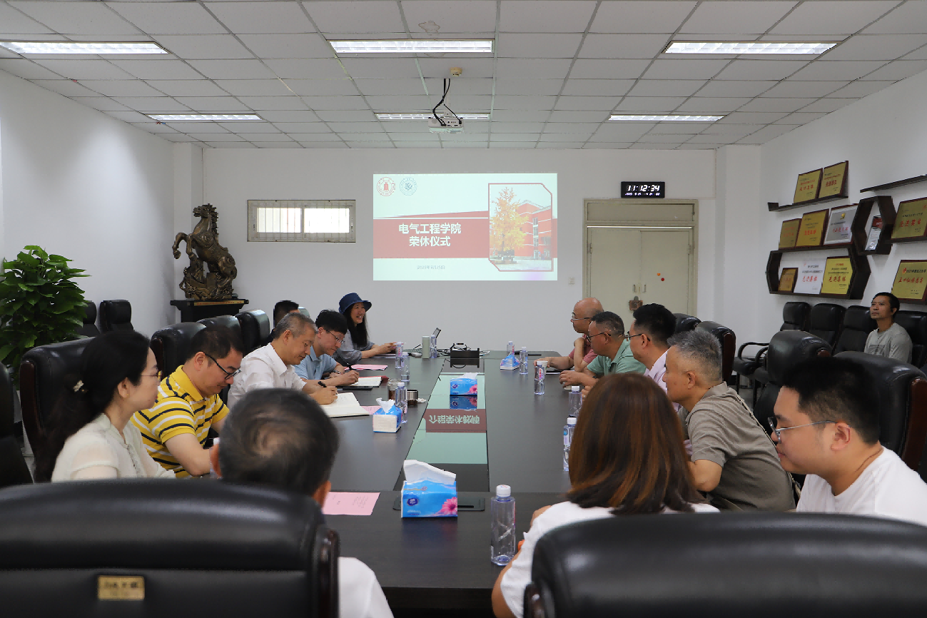 2025年度教职工荣休仪式在基础教学楼会议室举行。色情直播党委书记赵昱辉,院长肖先勇,副书记兼纪委书记、工会主席张英敏,自动化系党支部书记刘念、主任赵涛,电工电子基础实验教学中心主任沈晓东,电气信息工程研究与实验中心党支部书记任瑞玲、专业实验中心主任肖勇,电气工程系党支部副书记刘亚梅,工会副主席于孜清,以及荣休教职工和新进教职工代表参加了仪式。