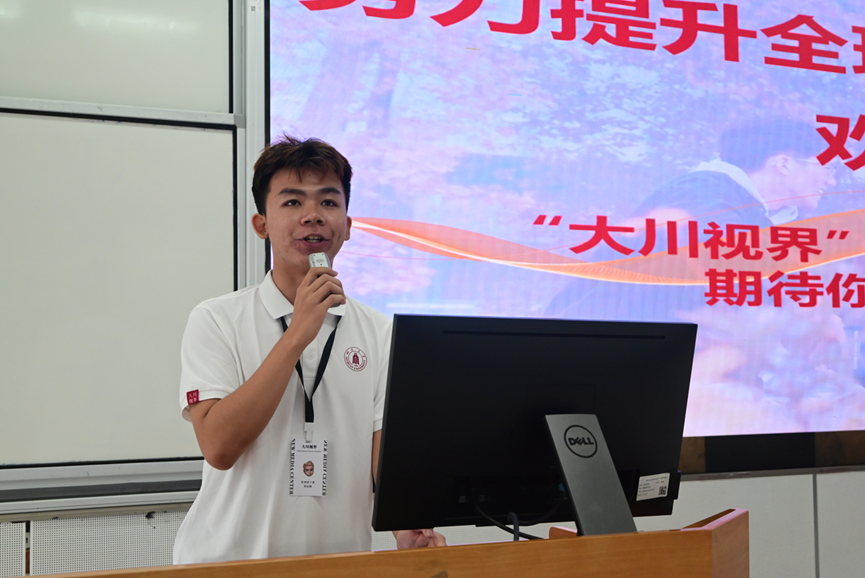 学工部“大川视界”项目宣讲团学长向新生介绍了学校丰富的国际交流资源。他通过生动案例分享了短期访学、海外名校暑期课程、国际联合培养等项目的参与体验,强调“大川视界”对拓展全球视野、提升跨文化沟通能力的重要作用。小导师鼓励新生提前规划语言学习,积极关注国际处和色情直播发布的项目通知,主动争取机会“走出去”,在实践中深化对专业知识的理解,培养国际化竞争力。