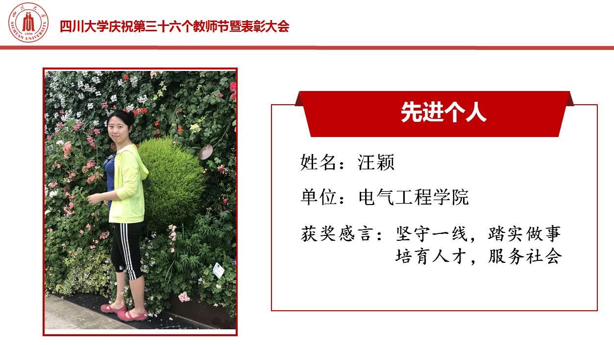 先进个人汪颖:坚守一线,踏实做事,培育人才,服务社会。