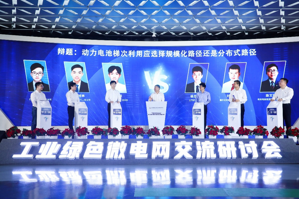 郑子萱副教授的带领下,电能质量与优质供电团队的三位研究生谢琦、陈旭林、张家琛到场参会,并参加了主题为《动力电池梯次利用应选择规模化路径还是分布式路径》的辩论赛。
