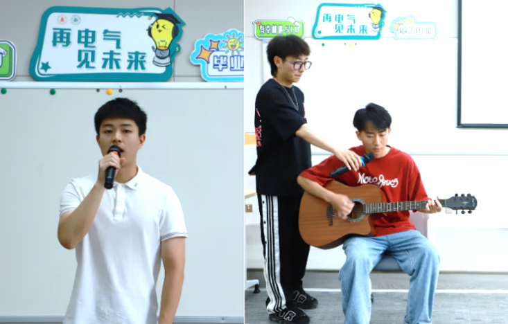 方思瑞博士为大家献唱《凤凰花开的路口》,2019级卓工班和江姐班的同学们也为大家吉他弹唱表演了歌曲《晴天》。节目过后,同学们进行了欢乐的游戏互动。