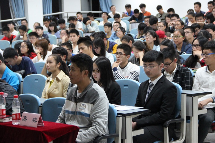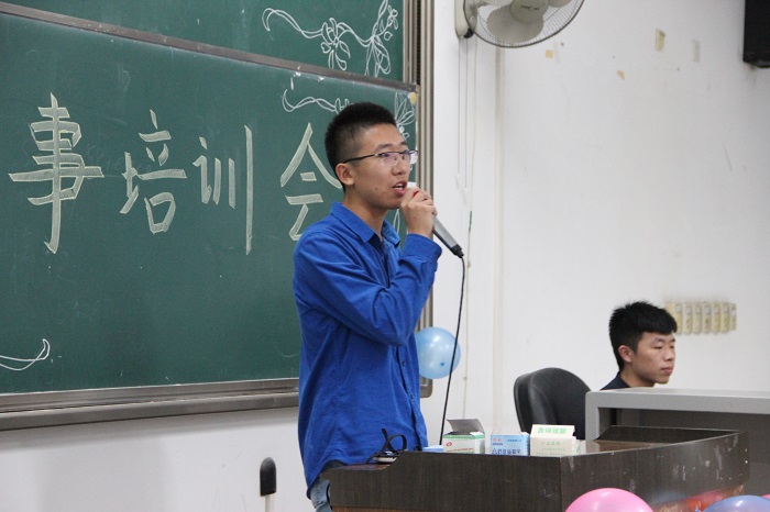 接下来,执行团委学生副书记谢佳霖学长进行讲话。他总体概述了团委学生会的工作,使新干事们对学生工作有了具体的了解。最后他以学长的身份满怀希望地说:接下来的一年是你们的时代,我们将尽己所能为你们提供帮助。他勉励干事们要有责任感、使命感,积极进取,大胆创新,让学生会更上一层楼。