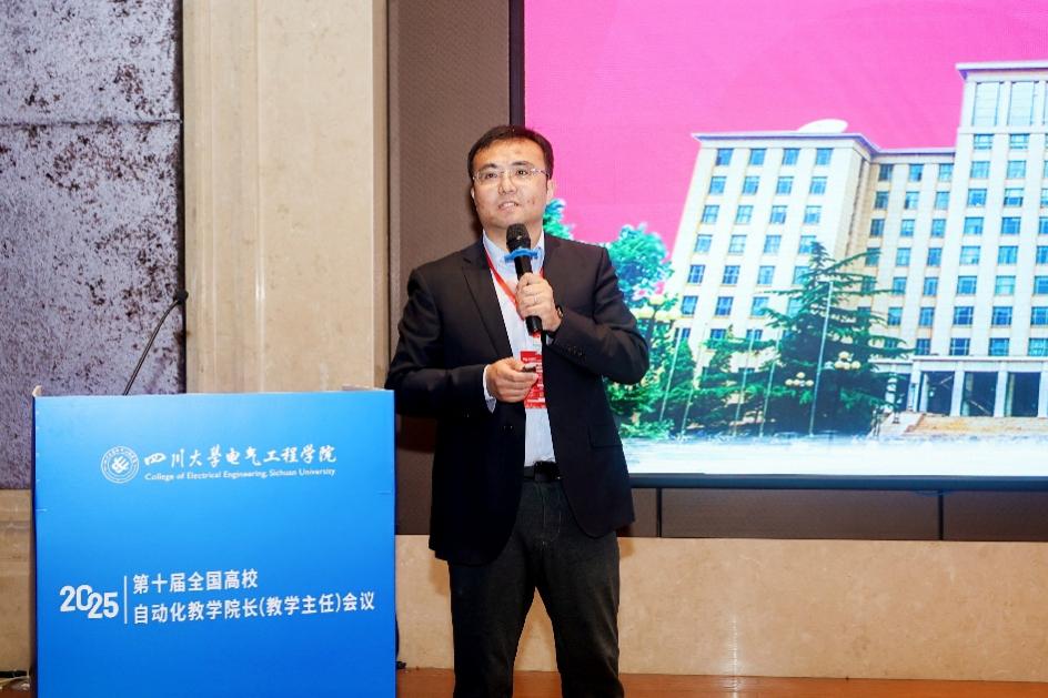 王艳丽代表四川省教育厅高教处对会议的召开表示祝贺。她指出四川省正深入贯彻落实党的二十届四中全会精神,持续优化高等教育布局,深化评价改革与综合试点工作,着力构建基础学科拔尖人才、战略紧缺人才和创新创业人才培养机制,本次会议聚焦智能时代自动化专业人才培养的创新与实践,是推动教育、科技、人才三位一体协同发展的重要举措。面对智能化发展趋势,自动化专业发展需进一步推动大数据、人工智能等前沿技术与传统课程深度融合,构建符合区域产业需求的自动化教育新生态。最后,她希望与会专家为四川省高等教育发展建言献策,共同推动自动化人才培养体系创新,为国家和区域现代化产业体系建设提供有力支撑。
