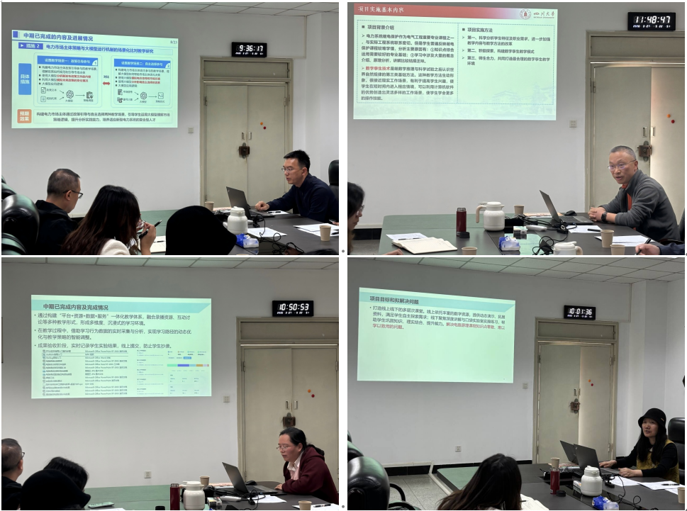 随后各项目结合教学实践,分享了各自在教学内容更新、教学方法创新、实践教学改革等方面的探索与尝试。例如:李程团队聚焦数智时代卓越工程师培养,构建“价值-能力”双螺旋AI赋能思政育人模型,已完成“电气工程专业思政知识图谱”初步搭建,相关研究成果已获期刊录用。在课程智能化建设方面,张英敏团队打造“资源-交互-评估”三维联动电路原理教学体系,开发的24小时AI学伴系统经过3万+专业语料训练,可较精准识别学生问题意图,已覆盖课程95%以上常见问题。实验教学改革与人才培养模式创新成果同样亮眼。赵涛团队构建学科竞赛驱动的自动化专业创新教育体系,通过优化课程体系、组建专业指导团队、深化校企合作,已形成“以赛促教、以赛促学”的良性循环,学生在国家级竞赛中的竞争力显著提升等。